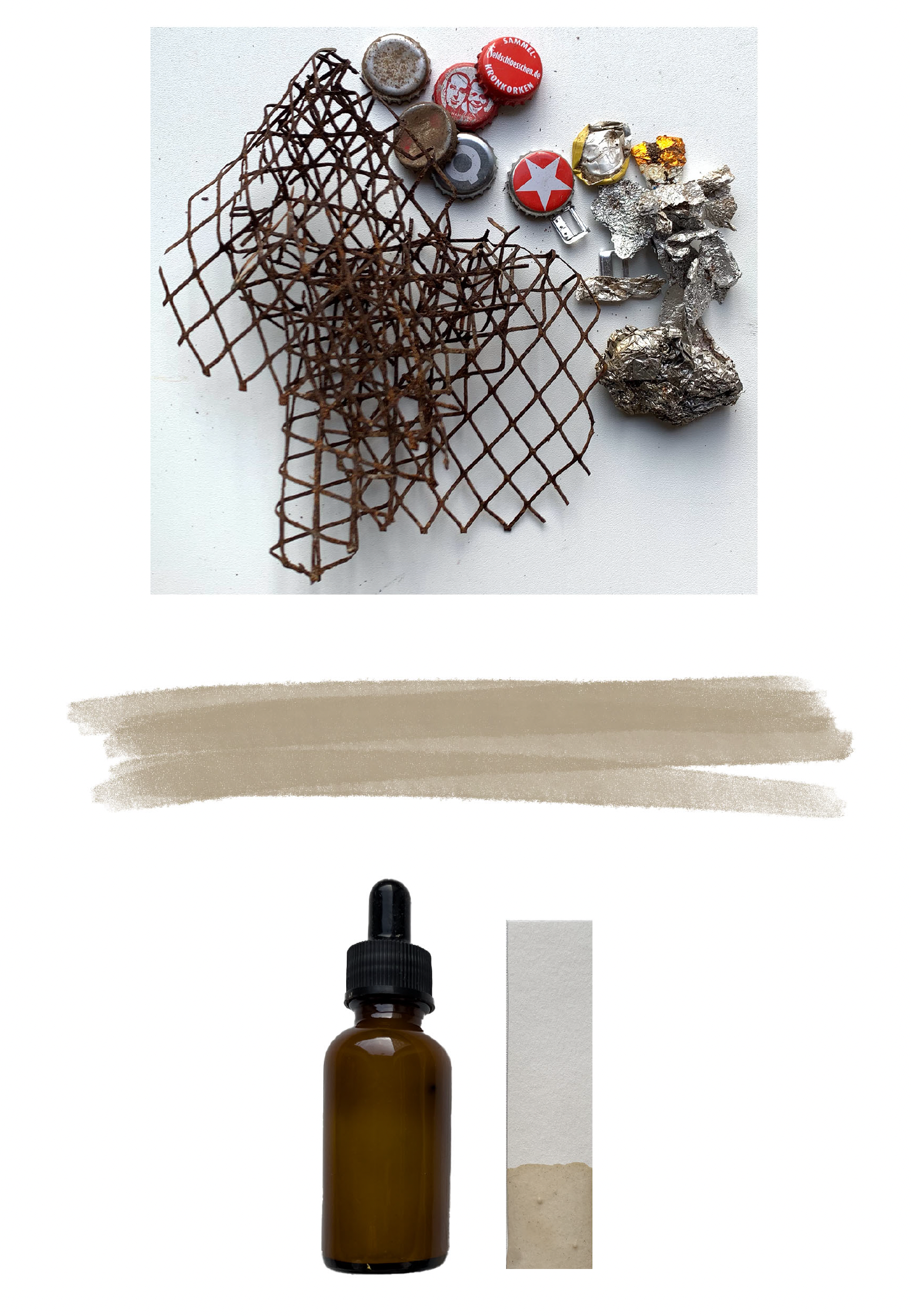The working process commenced with a journey to a forest in Dresden, where a plethora of colorful materials such as mushrooms, moss, and aged bark were gathered. I focused particularly on collecting garbage to clean up the forest on the one hand and to recycle and reuse this garbage on the other. Subsequently, these materials were crushed, fragmented, and meticulously selected to procure individual color extracts. These extracts were then showcased on separate pieces of paper before being gathered into individual test tubes.