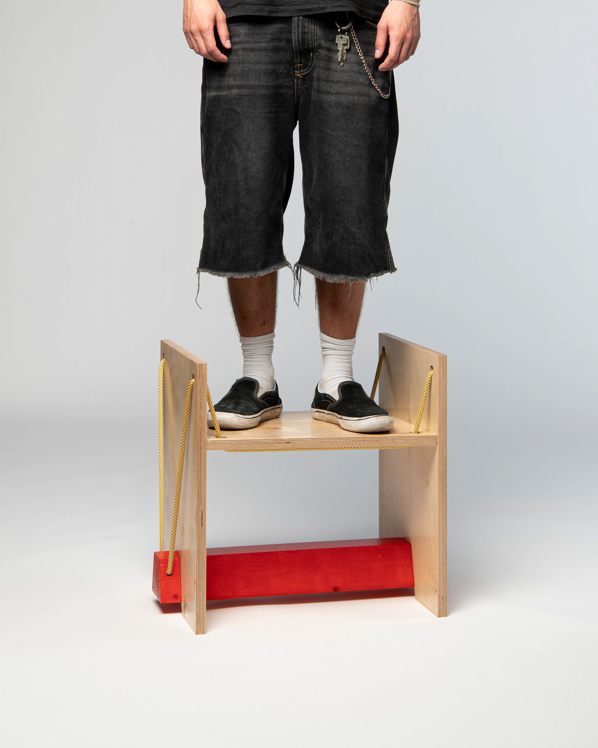 Hocker stehen immer bereit, stabil, wartend. Doch was, wenn Stabilität nicht als selbstverständlich gilt? Der Hocker fordert die Aufmerksamkeit seines Nutzers heraus – er wirkt fragil, beinahe so, als könnte er jeden Augenblick umkippen. Erst wer sich setzt, verleiht ihm Stabilität.