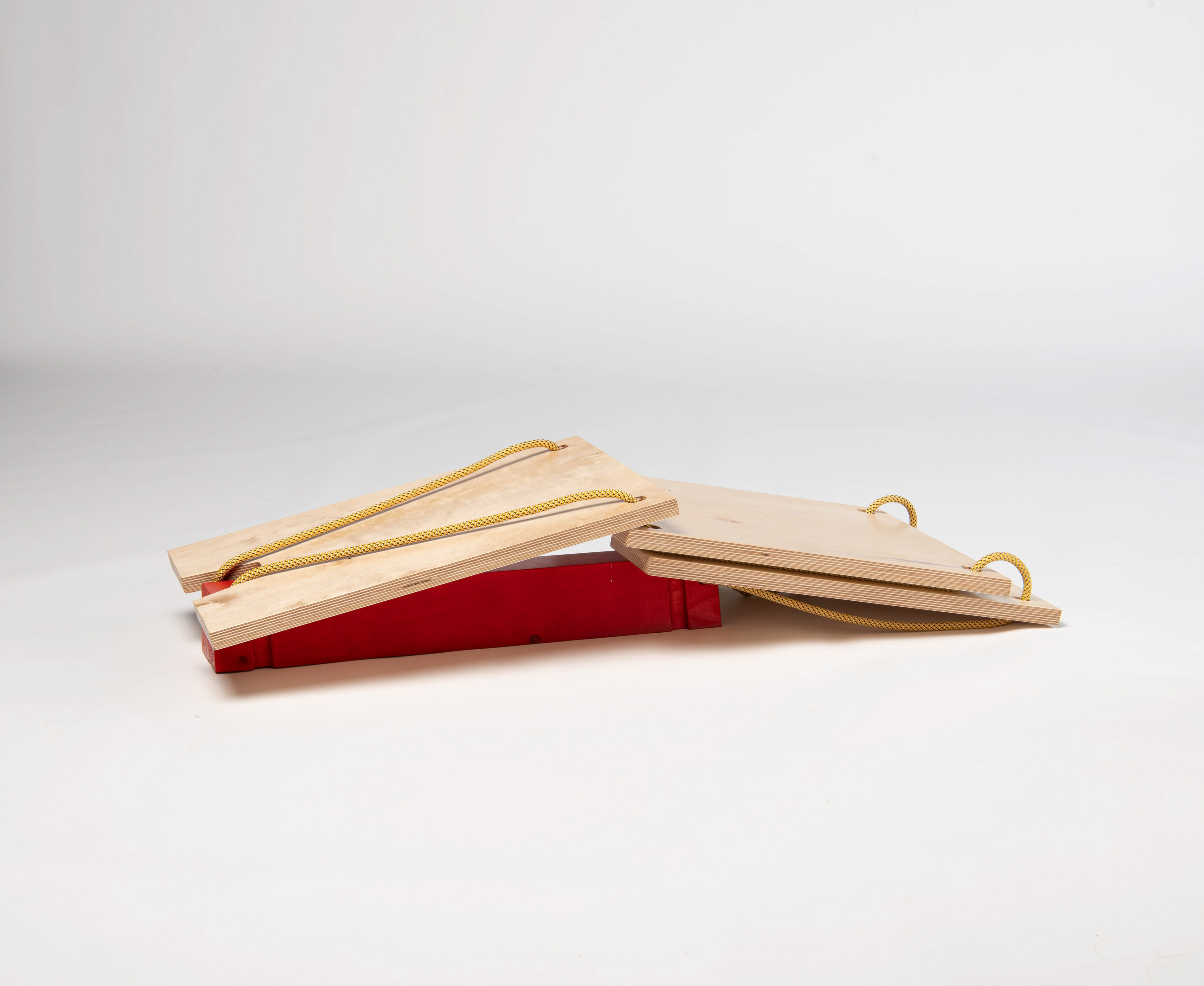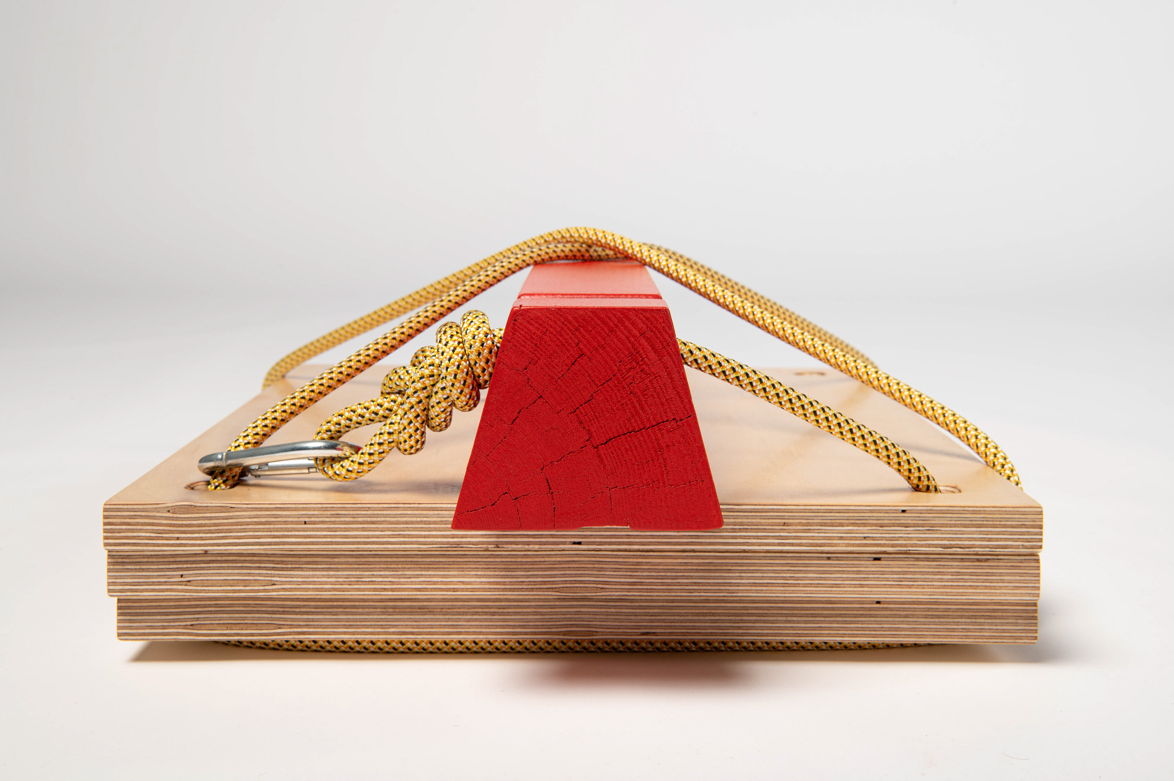 Wer aufsteht, löst die Spannung, entkoppelt das System wieder und bereitet es vor für Transport oder Neuanfang. Die rote Farbe des stabilisierenden Elements betont dessen Bedeutung – in Kombination mit Seil als Schlüssel zur Stabilität, sichtbar, auffordernd, ehrlich.